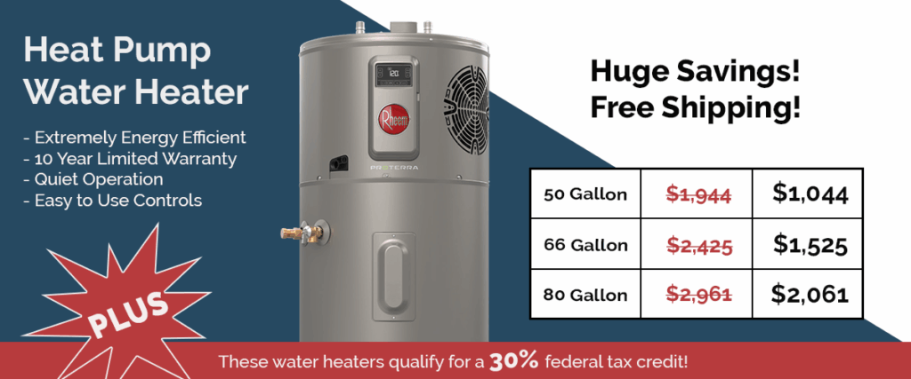 50 Gallon Rheem Heat Pump Water Heater: $1,044 (was $1,944)
